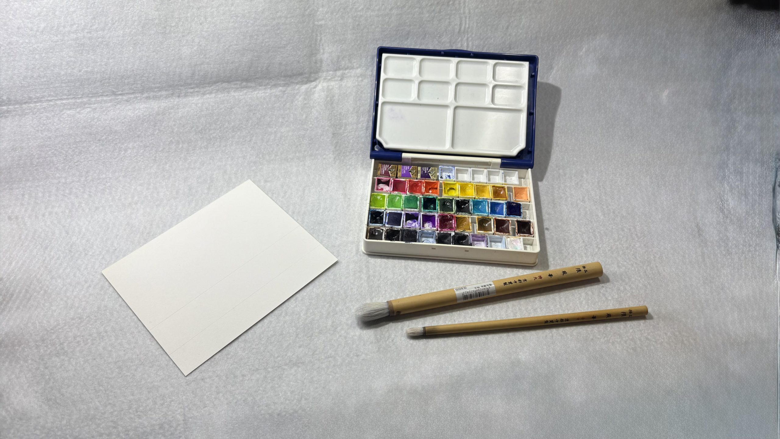 この作品を制作するにあたり、外せない画材があります。それは特種東海製紙株式会社様製「いづみN」紙、株式会社中里様製「極品隈取」筆、ホルベイン画材株式会社様製、透明水彩絵の具の「ホルベイン・アーチストパンカラー」です。