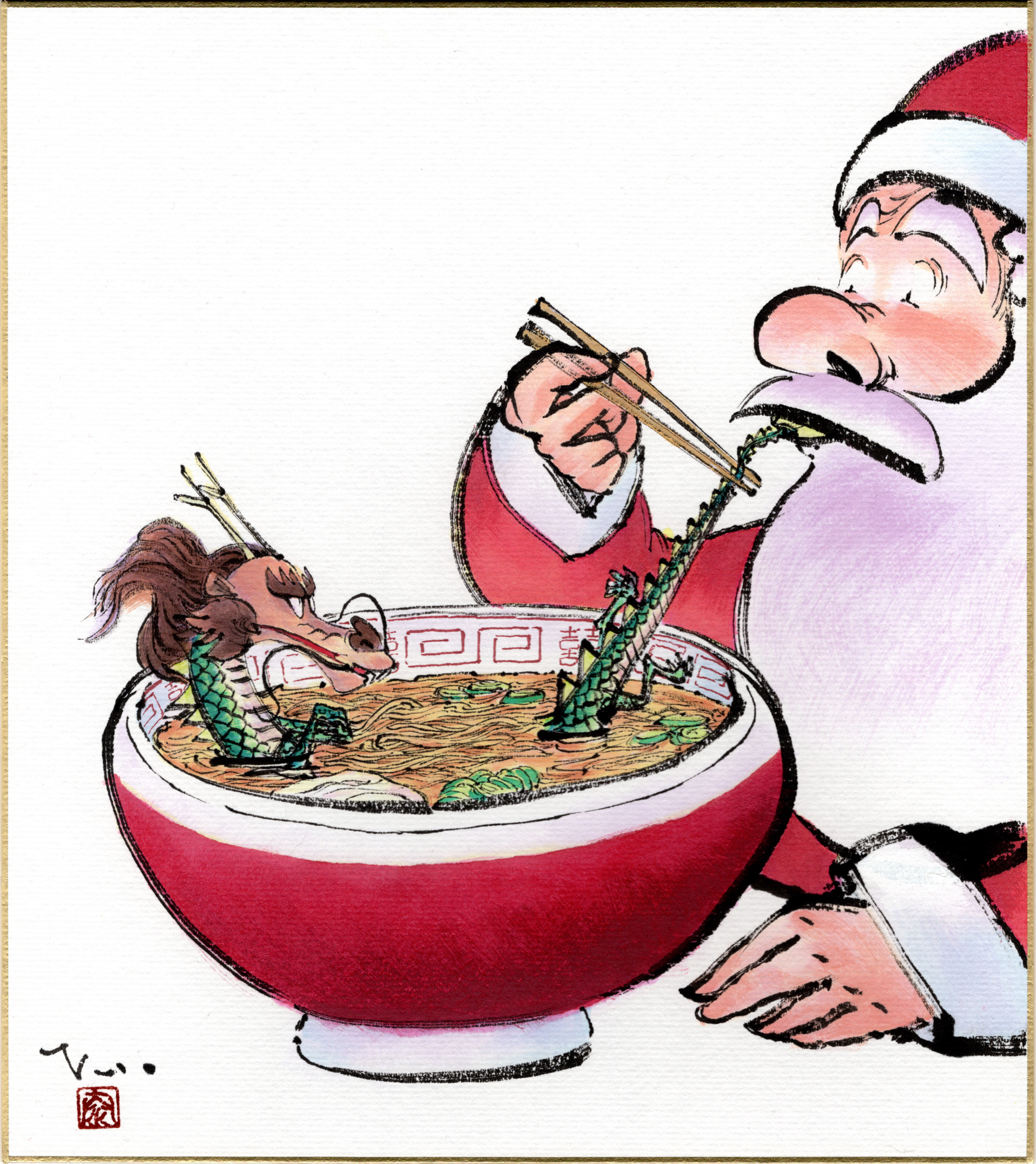 大学在学時から、大学の恩師の紹介でイベントなどでの似顔絵執筆を始めた。かれこれキャリアは30年以上となる訳だが、恩師の最初の教えやご一緒させて頂いた諸先輩方の画材の影響か、最初から色紙に和筆と墨、絵の具という形のまま今日まで来た。イベント席描きの似顔絵=色紙が一般的だったので、色紙に合う画材ということで自然にそうなった。